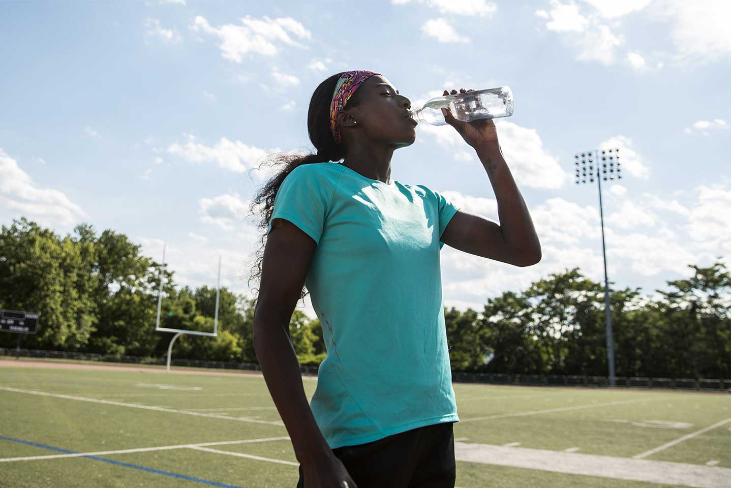 4. Bois beaucoup d'eau. Il est primordial de rester hydraté. Il te faut donc boire avant, pendant et après ta séance de running ou ta course.